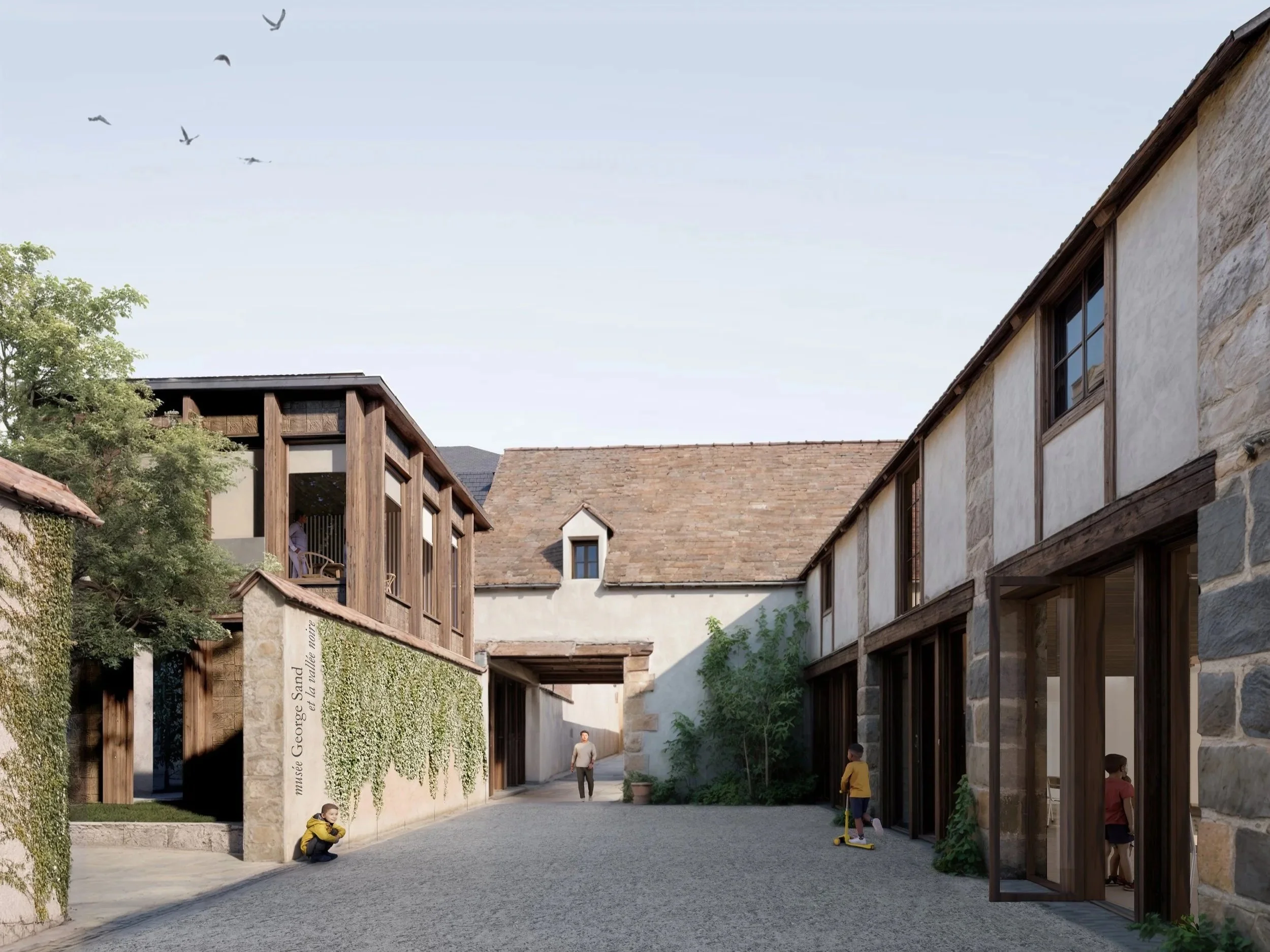 Le traitement des espaces intérieurs retranscrit la richesse poétique et sensorielle des paysages de la Vallée Noire et l’univers intime de George Sand, en croisant l’authenticité patrimoniale et la modernité muséale lié au programme.